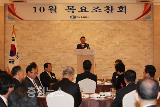 대전상공회의소(회장 손종현)는 17일 오전 대전유성호텔 3층 킹홀에서 지역발전을 선도하는 기관단체장들의 최대 정례교류회인 ‘10월 목요조찬회’를 개최했다.