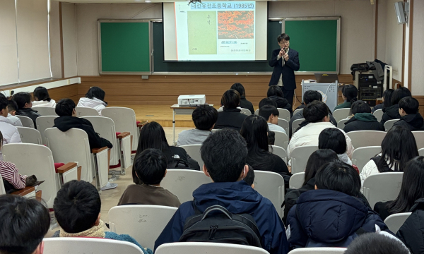 김수진 시인은 이날 강연에서 ‘100세 시대 균형 잡힌 삶의 방향 탐색’을 주제로, 학생들이 앞으로 맞이할 긴 인생을 주도적으로 설계할 수 있도록 돕는 데 초점을 맞췄다.
