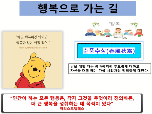 그는 가장 행복한 순간에 대해 "스스로 생각하고 결정할 수 있을 때, 자신이 성장하고 있음을 느낄 때, 의미있는 일을 하고 있을 때"라고 정의하며, "학생들이 타인의 기준이 아닌 나의 기준으로 '나의 길'을 찾아갈 용기를 가질 것"을 당부했다.