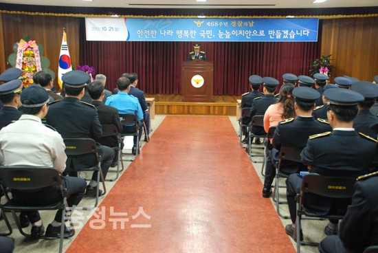 대전대덕경찰서 (서장 이동기)는 21일 오전 4층 대회의실에서 이동기 서장, 경찰협력단체장, 경찰관 등 150여명이 참석한 가운데 '제68주년 경찰의 날 기념식'을 개최하였다.
