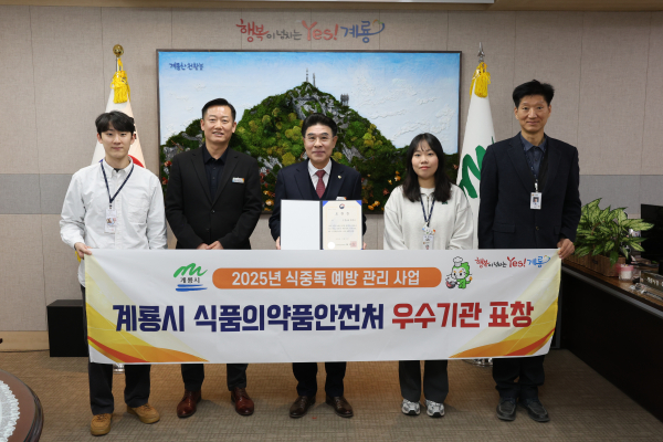 [충청뉴스 계룡 = 조홍기 기자] 계룡시는 ‘2025년 식중독 예방관리 사업 평가’에서 우수 기관으로 선정돼, 지난 12일 식품의약품안전처가 주최한 ‘전국 식중독 예방관리 역량강화 워크숍’에서 식품의약품안전처장 표창을 수상했다고 밝혔다.