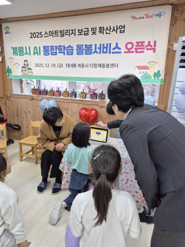 [충청뉴스 계룡 = 조홍기 기자] 계룡시(시장 이응우)는 19일 ‘AI 통합학습 돌봄서비스’ 시연회를 열고, 도내 최초로 아동돌봄시설에 최첨단 AI 기반 교육·돌봄 환경을 구축했다고 밝혔다.