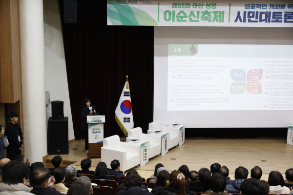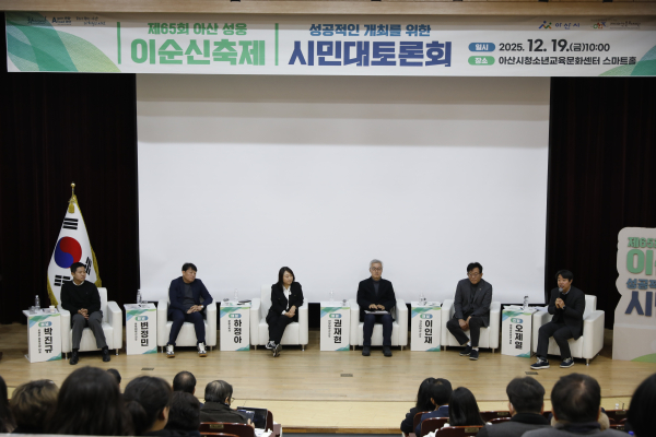 [충청뉴스 유규상 기자] (재)아산문화재단(대표이사 유성녀)은 지난 19일 아산시청소년교육문화센터 스마트홀에서 '제65회 아산 성웅 이순신축제의 성공적인 개최를 위한 시민 대토론회’를 개최했다.
