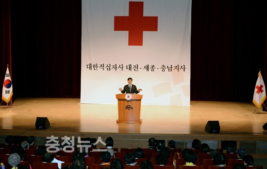 안희정 충남도지사와 이준우 도의회 의장, 민경용 적십자사 대전‧세종‧충남지사 회장, 도내 적십자 봉사원 등 600여명이 참석한 가운데 열린 이날 행사는 유공자 표창, 환영 및 축사 등의 순으로 진행됐다.