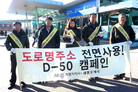 세종특별자치시(이하 세종시, 시장 유한식)와 세종우체국(국장 이천규)이 12일 오전 조치원역 광장에서 내년 1월 1일 전면 사용되는 도로명주소가 시민에게 안정적으로 정착할 수 있도록 하기 위한 캠페인을 벌였다.