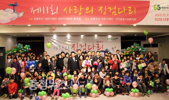 초록우산 어린이재단 대전지역본부(본부장 최명옥)는 지난 11일 대전 서구 월평동 소재 패션월드 3층 이마샤뷔페에서 대전지역 빈곤가정 아동 150여명과 후원자 및 자원봉사자 350여명 등 총 500여명을 초청, ‘제11회 사랑의 징검다리’ 행사를 개최했다.