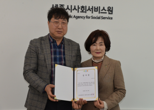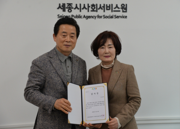 [충청뉴스 최형순 기자] 세종특별자치시 사회서비스원(원장 김명희)은 19일, 기관의 발전과 지역사회 복지 증진을 위해 헌신해 온 주요 인사들에게 감사장을 전달했다.