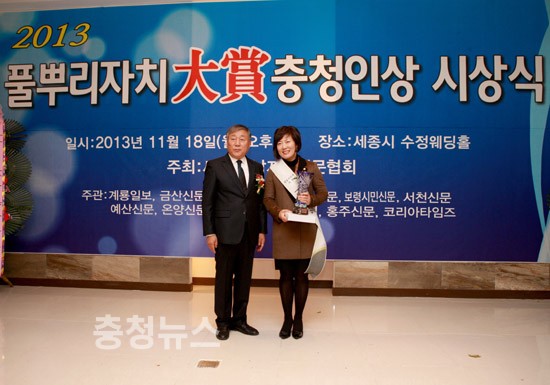 풀뿌리자치대상은 세종·충남지역신문협의회 주관으로 풀뿌리 지방자치시대 주민생활편의 확충 및 지방자치 발전에 기여하고 정치, 경제, 사회, 문화 등 각 분야별 지역을 빛낸 인물을 선정해 수여하는 상이다.