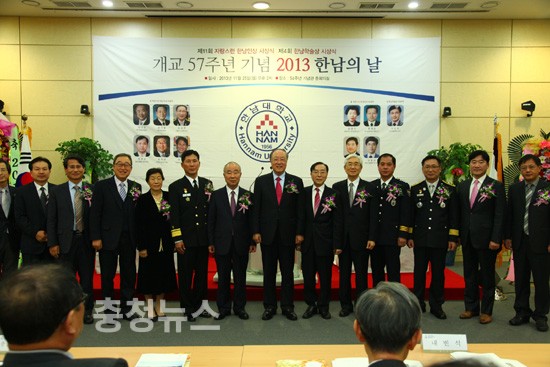 한남대학교(총장 김형태)는 25일 오후 56주년기념관에서 개교 57주년 한남의 날 행사를 개최하고 황기철 해군 참모총장, 박근태 (주)더맥키스컴퍼니 사장 등 10명의 동문에게 '자랑스러운 한남인상'을 시상했다.