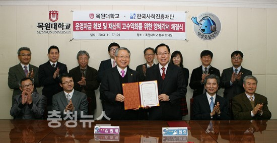 목원대(총장 김원배) 27일 오전 본부 회의실에서 한국사학진흥재단과 업무 협약을 맺었다.