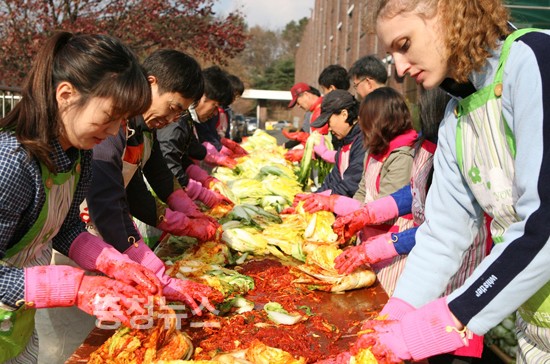 체코 유학생인 루시(TESOL영어과 1년)씨는 “처음 배추김치를 담가보는데 힘들지만 너무 재미있다”며 “방학 때 집에 돌아가면 부모님은 물론 친구들에게 경험담을 들려줄 것”이라고 즐거워했다.