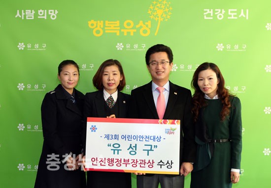 대전시 유성구(구청장 허태정)는 3일 서울 세종문화회관에서 열린 ‘제3회 어린이안전대상 공모전’ 시상식에서 안전행정부 장관상을 수상했다.