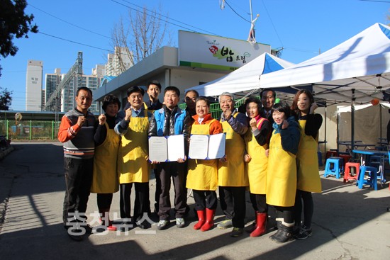 민주당 세종시당(위원장 이춘희)이 운영하는 민주세종봉사단(단장 정준이)은 6일 (사)밥드림 세종무료급식소와 무료급식협력협약식을 갖고 무료급식을 통한 이웃사랑 실천을 다짐했다.