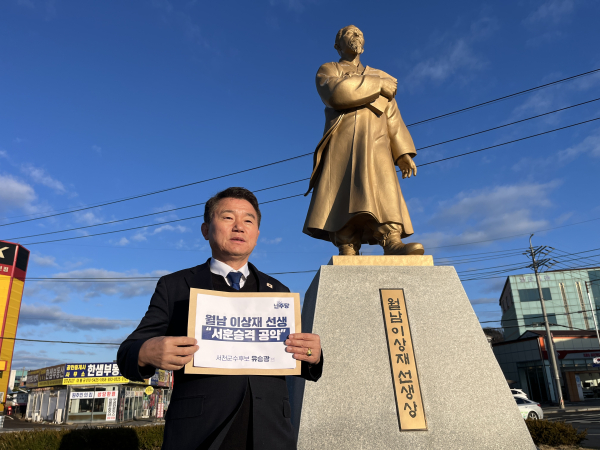 [충청뉴스 서천 = 조홍기 기자] 더불어민주당 유승광 서천군수 출마예정자가 3.1절을 기념한 월남 이상재 선생 서훈 상향 공약을 발표했다.