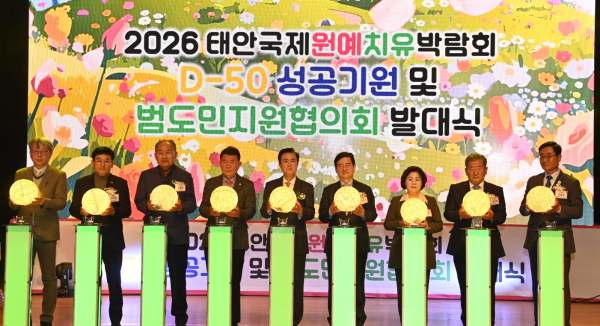 [충청뉴스 박영환 기자] 충남도는 3일 태안 문화예술회관 대공연장에서 50일 앞으로 다가온 ‘2026 태안국제원예치유박람회’의 성공개최를 위해 범도민지원협의회 발대식을 개최했다.