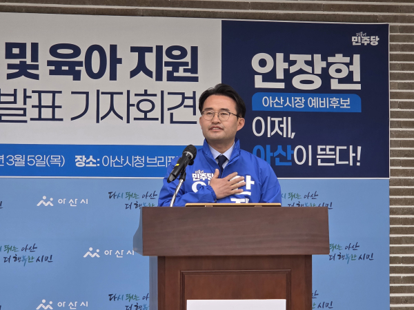 [충청뉴스 유규상 기자] 안장헌 아산시장 예비후보가 5일 아산시청에서 기자회견을 갖고 맞벌이 부부와 어린 자녀를 둔 부모들의 최대 고민인 ‘소아 의료 공백’ 문제를 해결하기 위해 ‘아산형 365 소아 야간응급 진료센터’ 신설 핵심공약을 발표했다.