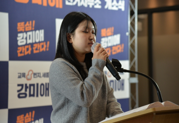 이어 시민 대표로 나선 방서영 씨(고려대 재학)는 “학창 시절 교장 선생님으로 뵈었던 강 후보님은 성적보다 아이들의 가능성을 먼저 보시는 따뜻한 분이었다”며 “현장의 고민과 학부모의 걱정을 누구보다 잘 아는 분이기에 세종 교육의 미래를 믿고 맡길 수 있다”고 진심 어린 응원을 전했다.
