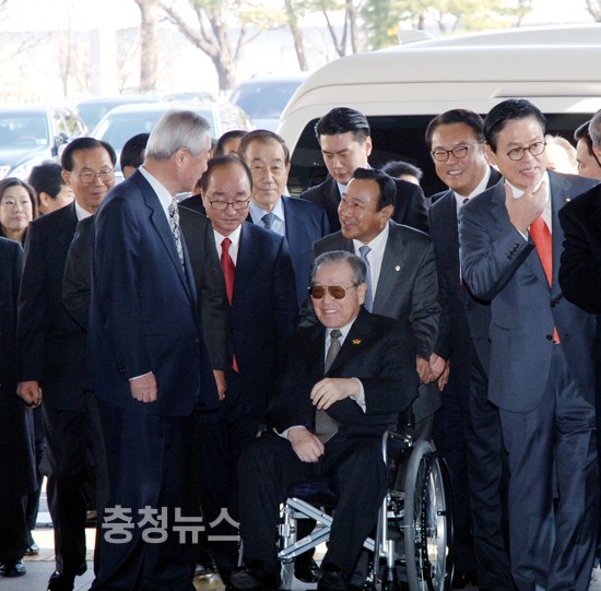 헌정기념관 입구에는 박정희 대통령시대를 이끌었던 총리와 국회의장 출신을 비롯한 자민련 출신과 충청권 정치인들의 총출동하며 김 前 총재를 반갑게 맞이했다.