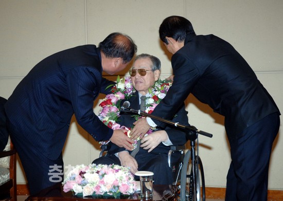 휠체어에 앉은 채 행사에 임한 김 前 총리는 박정희 전 대통령의 "5·16 혁명 한일 국교정상화 보상금 및 광부·간호사 독일파견 .월남 파병을 통해 확립한 경제기반 과정을 연도별로 강조하는 발언을 쏟아냈다.