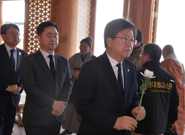 특히 "불교에서는 인생을 한바탕 꿈이라 한다. 고인께서는 민주화와 국가 균형 발전이라는 큰 꿈을 이루고 가셨으니, 이제는 고문과 고통 없는 곳에서 평안하시길 바란다"는 위로를 전해 장내를 숙연케 했다.