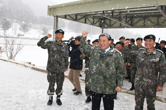 강 의장은 이날 오전 11시경 강원도 화천군 육군 7사단에 도착, 구흥모 제7사단장 등 지휘관들의 영접을 받고 방명록에 “상승칠성 부대원 여러분! 그대들이 있어 국민들이 편히 쉴 수 있습니다. 감사합니다. 건승을 빕니다”라고 적었다.
