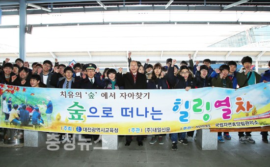 대전시교육청(교육감 김신호)은 대학수학능력시험을 끝내고 고등학교 생활을 마무리하는 3학년생 47명이 미래의 삶을 넓혀 준 고마운 선생님 8분을 모시고 국립남해편백자연휴양림(경남 남해군 삼동면)으로 떠나는 힐링열차 프로그램을 지난 14일부터 1박 2일 일정으로 운영했다.