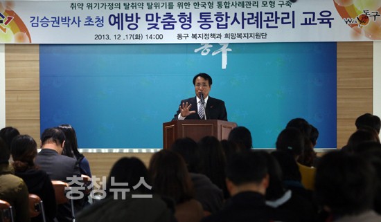 대전 동구(구청장 한현택)는 17일 구청 중회의실에서 구 및 동 사회복지 공무원, 복지시설 및 관내 초·중교 교육복지 사회복지사 등 120여명을 대상으로 통합사례관리 교육을 실시했다.