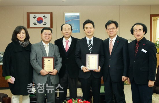 대전시교육청(교육감 김신호)은 19일 오전 교육감실에서 2013년 한해 동안 HAPPY스쿨! 대전교육사랑운동에 동참해 교육기부 프로그램을 운영함으로써 우수인재 육성에 기여한 공이 큰 대전‧충남아나운서협회 교육기부 유공자 2명에게 감사패를 수여하고 고마움을 표했다.
