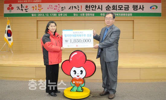충남테크노파크(원장 윤창현·이하 충남TP)는 필리핀 태풍 피해와 관련, 충남TP 및 입주기업 임직원들이 자발적으로 모은 구호 성금 185만원을 충남사회복지공동모금회에 전달했다고 19일 밝혔다.