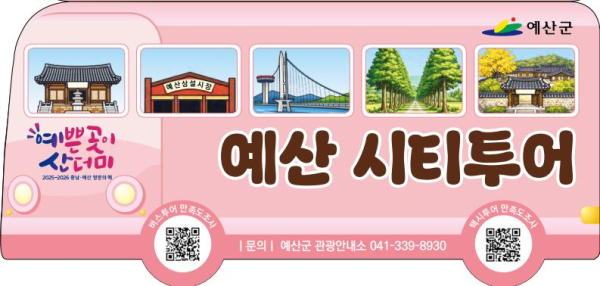 [충청뉴스 박영환 기자] 예산군은 주요 관광명소를 편리하게 둘러볼 수 있는 ‘2026 예산 시티투어버스’ 운영을 본격 시작한다고 27일 밝혔다.