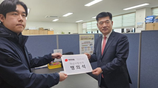 [충청뉴스 유규상 기자] 아산시의회 맹의석 부의장이 아산시장 출마를 공식화하며 국민의힘 공천 경쟁에 본격 합류함에 따라 아산시장 선거가 새로운 국면을 맞고 있다.