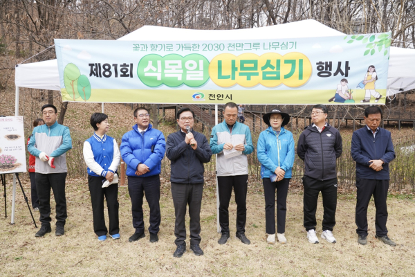 이번 식목행사는 진달래의 원활한 활착을 위해 식목일인 4월 5일보다 앞당겨 진행하게 되었으며, 김석필 천안시장 권한대행 부시장을 비롯해 공원녹지사업본부, 산림조합, 천안시 자원봉사센터 등 관계자 150여 명이 참석했다.