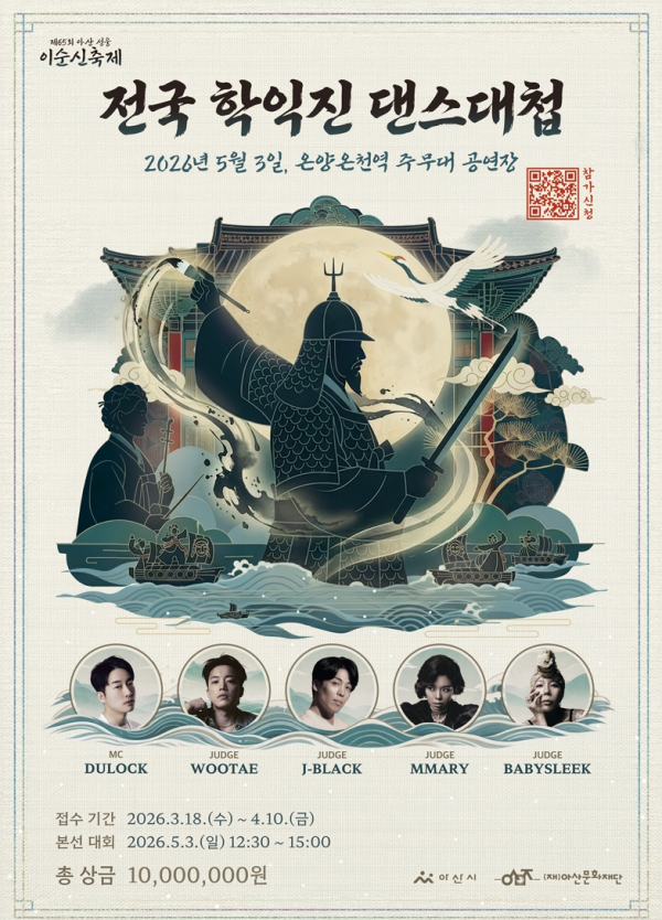 [충청뉴스 유규상 기자] 아산시와 (재)아산문화재단은 「제65회 아산 성웅 이순신축제」 기간 중 개최되는 ‘전국 학익진 댄스대첩 경연대회’ 참가팀을 지난 18일부터 오는 4월 10일까지 모집한다.