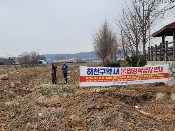 [충청뉴스 유규상 기자] 천안시가 하천 내 불법 경작을 근절하고 여름철 집중호우로 인한 침수 피해를 예방하기 위해 입장천 일대를 대상으로 고강도 현장 정비와 점검을 실시했다.