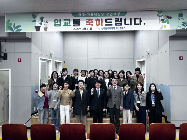아산캠퍼스 이성근 학장은 “새로운 창업의 길에 용기있게 발걸음을 내딛는 교육생들의 열정에 찬사를 보내며, 원예가드닝은 화훼 및 식물관리뿐아니라 정원관리 조경까지 포함하는 과정으로 여러분의 창업에 더욱 큰 도움이 될거라고 밝혔다.