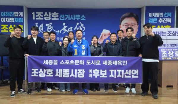 먼저 지난 29일, 세종시 축구 종목 감독, 코치, 학부모 등 생활 체육인 113명은 조 예비후보의 정책 비전에 대해 전폭적인 지지를 선언했다.