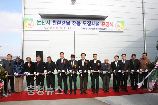 이번에 준공한 친환경 쌀 전용 도정시설은 논산미곡처리장영농조합법인(대표 이영규)이 사업비 3억7400만원을 투자한 연면적 200㎡ 규모로 시간당 2.5톤의 친환경 쌀을 가공 할 수 있는 최신시설이다.