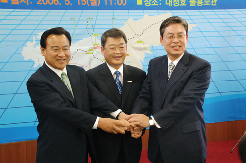 ▲ 이완구 충남도지사, 박성효 대전시장, 정우택 충북도지사 당선자<좌부터>