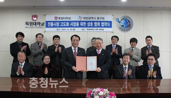 목원대(총장 김원배)와 대전시 동구청(청장 한현택)는 30일 목원대 본부 회의실에서 ‘전통시장 고도화 지원을 위한 상호협력 협약’을 체결했다.