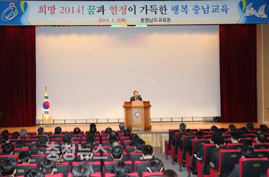 충남도교육청(교육감권한대행 부교육감 전찬환)은 2일, 전찬환 교육감 권한대행과 간부직원의 충령사(홍성군 홍성읍 남장리 소재) 참배 후 대강당에서 전직원이 참석한 가운데 시무식을 갖고 2014년을 희망차게 시작했다.