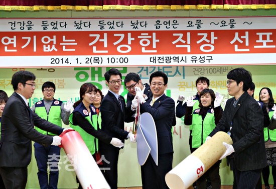 이번 행사는 유성구가 표방하는 건강도시 조성의 일환으로 직장 내 금연 분위기 확산을 통해 건강도시 조성에 앞장서기 위해 마련됐다.