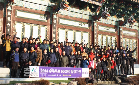 (주)금성백조주택(회장 정성욱) 임직원 100여명은 지난 4일 토요일, 향적산 국사봉(충남 계룡시)으로 ‘2014 수주목표 6,500억원 달성기원’ 등반을 실시했다.