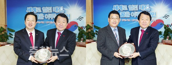 염홍철 대전시장은 역대 최대 국비확보에 적극 협조해준 지역국회의원에게 감사패를 수여했다.