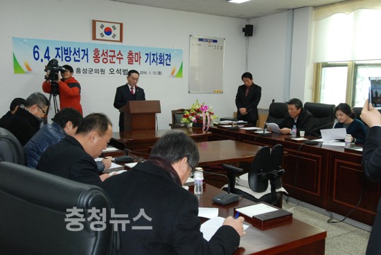 홍성군의회 3선 의원인 오석범(새누리당)의원은 13일 오전 홍성군의회에서 기자회견을 열고 오는 6·4지방선거 홍성군수 출마를 공식 선언했다.