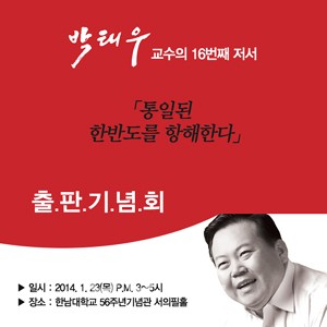 2014년 6·4 지방선거 대전대덕구청장 출마를 선언한 박태우 고려대학교 연구교수가 오는 23일 오후 3시 한남대학교 56주년기념관 서의필홀에서 “통일된 한반도를 항해한다”는 출판기념회를 개최한다.