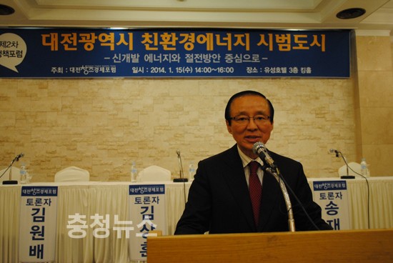 이 전 의원은 포럼에서 “국민소득 5만불 시대를 대전이 선도하기 위해서는 어떻게 해야겠느냐”고 따져 물은 뒤 “우리가 사랑하는 대전을 친환경 에너지 시범도시로 만들어야 한다”고 해법을 제시했다.