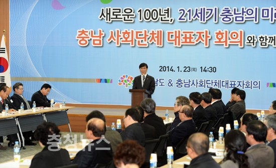 안희정 충남도지사는 23일 도청 대회의실에서 열린 ‘충남 사회단체 대표자 회의’에 참석, “지속가능한 충남 발전을 위해 시민·사회단체가 앞장 서 줄 것”을 당부했다.