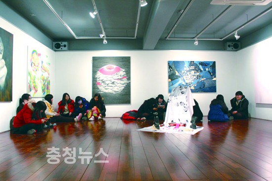 무엇보다 인문계 고등학교 안에서 숨통이 트이는 공간이라는 것이 학생들이 홀스톤 갤러리를 찾는 이유다. 이곳에서 학생들은 친구 생일파티를 열어주기도 하고, 바닥에 앉아서 혹은 누워서 쉬기도 한다. 김주태 선생님은, 학생들이 편히 앉아서 이야기 나눌 수 있도록 홀스톤 갤러리 바닥을 나무로 만들었다고 설명한다.