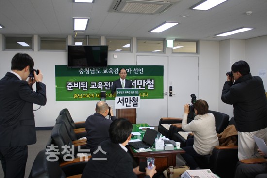 공주대학교 서만철 총장이 28일 오전 충남도교육청 기자실에서 충남교육감 출마선언을 하고 본격적인 선거에 뛰어들었다.