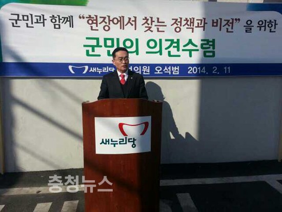 오 의원은 ▲도청신도시를 포함한 홍성과 예산의 행정구역 통합으로 시 승격 추진 ▲내포신도시와 홍성읍을 연결하는 공간개발로 홍성의 공동화 방지 및 도심 재생사업 추진 ▲홍성고등학교 이전부지에 대학종합병원 유치로 군민의 의료혜택 ▲홍주성 문화재 복원사업 전면 재검토 추진 ▲명동상가 매일시장 활성화를 위한 주차장설치 및 5일시장 특화사업으로 지역상권 회복 ▲농축산어업의 정책변화, 벼병충해 방지사업단 신설, 친환경농업 농업의 6차산업화로 생산- 가공-관광서비스를 연계 부가가치 창출 ▲장항선개량 2단계사업 광천철도노선과 광천역 이전은 원안대로 추진 ▲홍성군지역 경제활성화를 위한 특산물 전담팀 신설 운영 ▲고통 받는 광천읍민을 위한 비산먼지 문제 해결 ▲1종 어항인 남당항에 보령수협사업소, 수산물 위판장. 생새우 경매장 설립 10가지 정책을 제시하고 이를 실천하기 위한 지역주민들의 세부적인 의견 수렴의 시간을 가졌다.